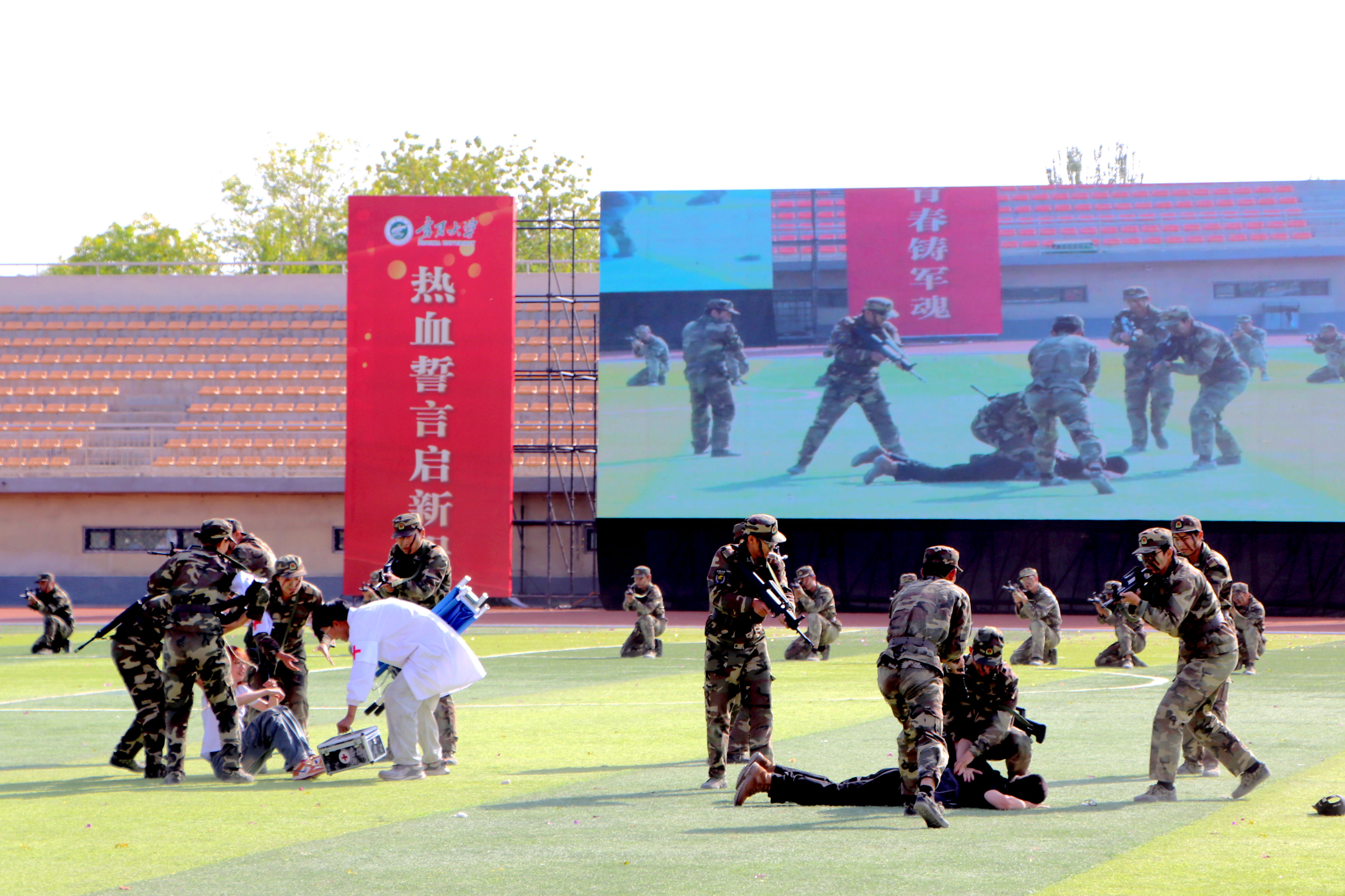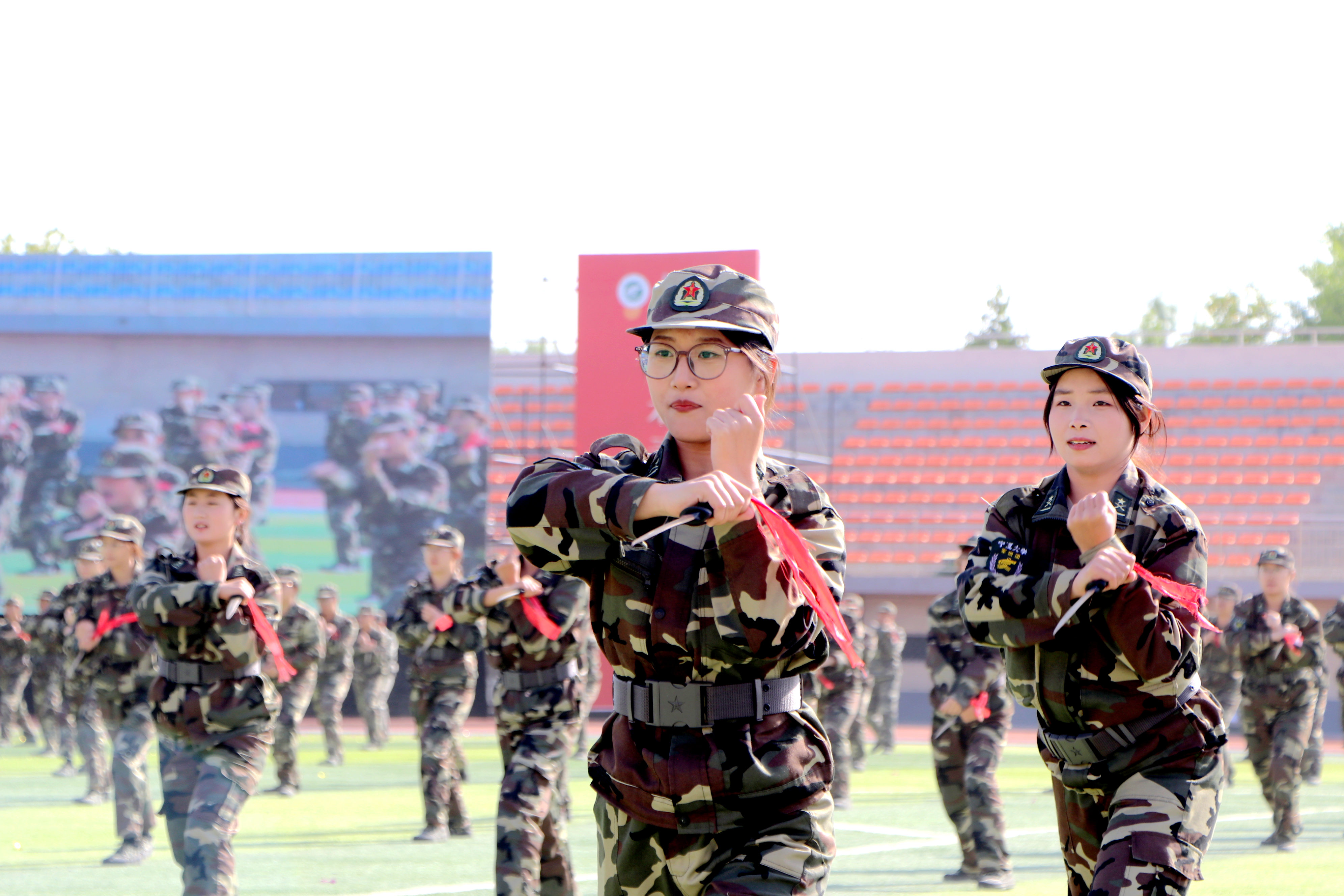 在科目汇报上,图形变换与啦啦操表演用灵动的队形勾勒出对祖国山河的深情眷恋;匕首术方阵在动静间彰显宁大学子刻苦训练、锤打锻造的昂扬英姿;集防、劈、刺于一体的刺杀操,展现了同学们的精神抖擞与壮志满怀,突刺攻防间尽显中国青年的铁血英姿和豪迈气概;男女混合战术分队并肩构筑防御阵线,默契传递战术指令,用整齐动作诠释了“同舟共济”,以青春姿态书写军训答卷;军歌表演中,同学们精神抖擞,歌声嘹亮,用激昂的旋律和饱满的热情表达了对祖国的热爱、对军人的崇敬以及对大学生活的憧憬。