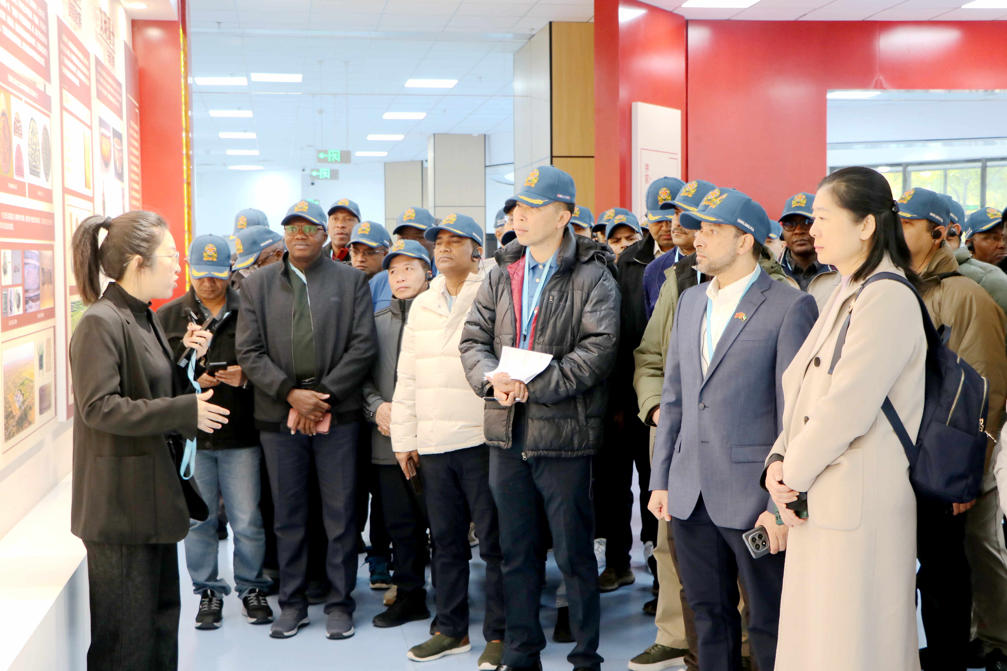 会前,国防大学国际防务学院第50期防务与战略班学员在笃行楼一楼参观了“石榴花开润塞上——铸牢中华民族共同体意识的宁夏实践”图片展览,工作人员通过英语交替传译的方式,向学员们生动讲解中华民族多元一体格局的形成与发展,帮助他们深入了解中华民族共同体建设的丰富内涵与实践成果。