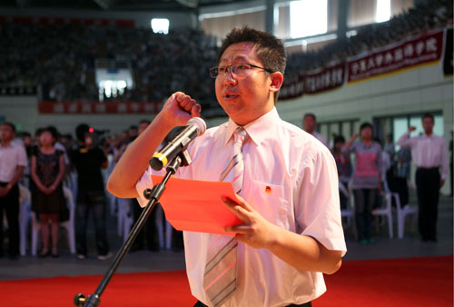 外国语学院李姜同学带领全体新生进行入学宣誓