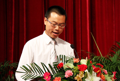 教师代表、人文学院王岩森老师在典礼上发言