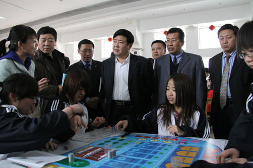 何建国校长观摩指导学生ERP模拟沙盘比赛