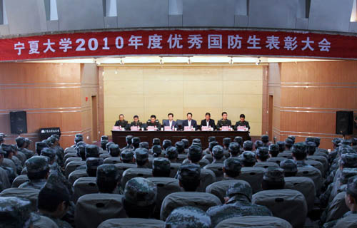 驻校选培办副主任贺生斌宣读了宁夏军区政治部关于《表彰2010年度优秀国防生、优秀国防生骨干和国防生先进集体》的通报。