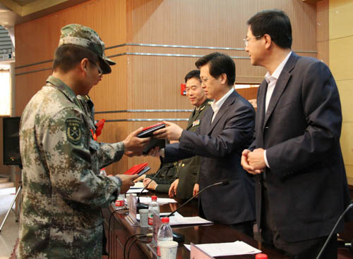 与会领导为国防生颁奖