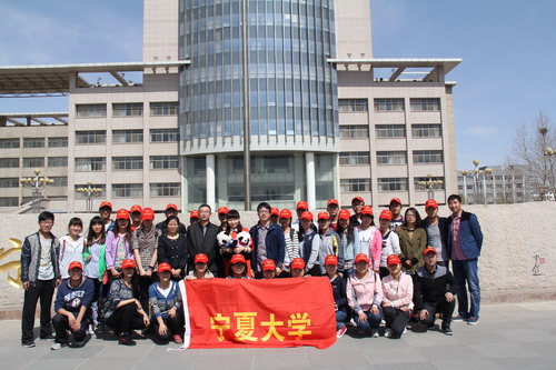 【宁夏大学新闻中心讯 团委】3月31日中午,由校团委主办、学生会承办、志愿者协会协办的“和平友爱公益季”爱心传递活动在校本部A区主楼前举行。校团委副书记马慧、肖功国以及30余名志愿者代表参与其中,并与成龙派出的爱心使者La和Zy两只熊猫合影留念。