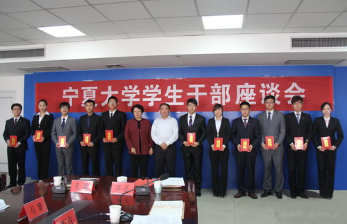 【宁夏大学新闻中心讯 团委】在宁夏大学第二十一次学生代表大会召开之后,校党委十分关心学校学生会的工作,关心学生干部队伍的建设。3月26日下午,校团委在校本部A区十楼会议室组织召开学生干部座谈会。校党委书记齐岳,纪委书记孔斌,宁夏大学第二十一届学生委员会秘书长马慧及第二十一届学生委员会40名委员参加了座谈。马慧主持会议。