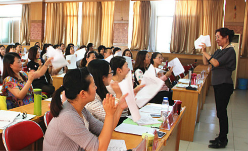 首场讲座中,首都师范大学郑莉教授以亲切、幽默的语言和灵活、互动的教学方法,重点针对学员在一线音乐教育教学中所遇到的实际困惑和理论难题给予了解答,认真向学员传授具体实用的肢体语言、声音感受、符号运用以及国外达尔克罗兹的体态律动、柯达伊的手势教学法等多种教学方法和技巧。她强调,音乐教学设计一定要让学生参与实践、突出亮点,让学生在感受艺术魅力的同时形成对音乐本身的美感认同。她建议各位学员要在不断学习、不断提高的基础上积极进行校本教材的研发,希望各位学员能把传承校园文化的责任心融入自身教书育人的实践之中,努力做音乐教育的有心人。