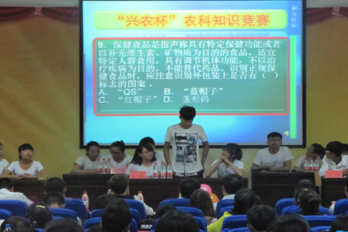 比赛分为先声夺人、一站到底、争分夺秒三个环节。在“先声夺人”环节中,选手沉着应对,比赛气氛紧张激烈,观众也从中学习到很多农科类专业知识,激烈的对决激发了参赛选手的潜能,也考察了选手的个人作战能力和集体协作能力,为我们呈现出精彩绝伦的比拼。在“争分夺秒”环节中,选手们敏捷的思维,让观众叹为观止。活动中还进行了观众互动环节,调动了观众的积极性。经过激烈角逐,农学院12级以赵佳薇、鲁苗、赵珍为组合的代表队获得了一等奖。