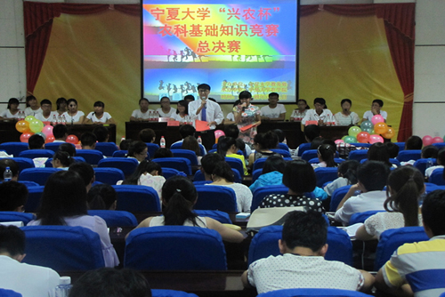 【宁夏大学新闻中心讯 农学院 韩泽宇/文 徐彦龙/图】6月9日晚,宁夏大学首届“兴农杯”农科知识竞赛决赛在文科楼一楼报告厅举行。农学院党委副书记罗进德、副院长马红彬等老师担任评委,农学院300余名学生观看了比赛。
