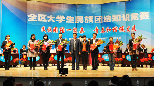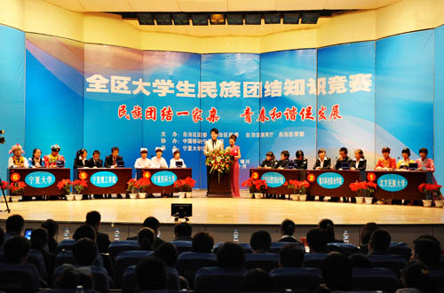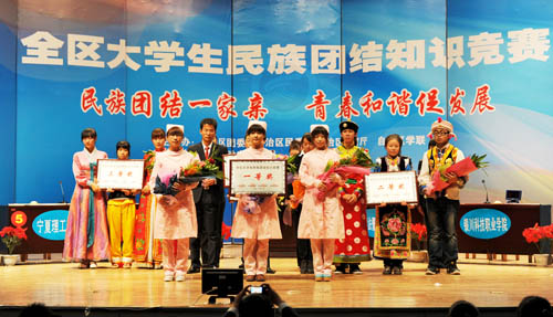据悉,本次活动于2011年9月下旬启动,在全区15所大中专院校进行了三场预赛,最终,宁夏大学、宁夏医科大学、北方民族大学、宁夏司法警官职业技术学院、银川科技职业技术学院、宁夏理工学院六支代表队进入决赛。本次活动命题以党史、国情、区情和民族团结知识为重点,旨在增强我区高校大学生民族团结意识,树立正确的民族观,掌握党和国家民族政策。