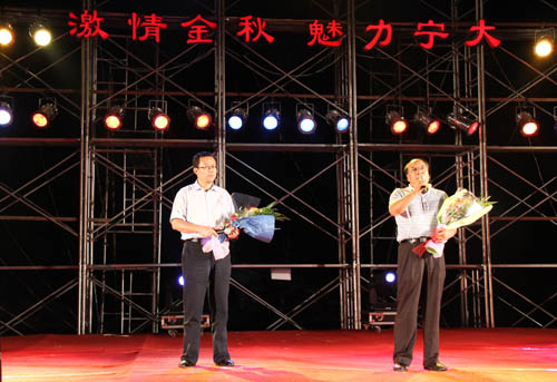 【宁夏大学新闻中心讯 黄二宁 图/ 翟 伟/文】9月15日晚,校本部C区体育场流光溢彩、歌声激扬,我校以“激情金秋 魅力宁大”为主题的庆祝宁夏大学建校52周年暨迎新生大型校园文艺晚会隆重举行。自治区教育厅副厅长冀永强,校党委书记齐岳,校长何建国,副书记赵利宁,副校长王燕昌、李星、谢应忠出席晚会,来自区内的校友、嘉宾和近万名师生再聚校园,共祝我校52岁生日,共迎2010级新生入学。