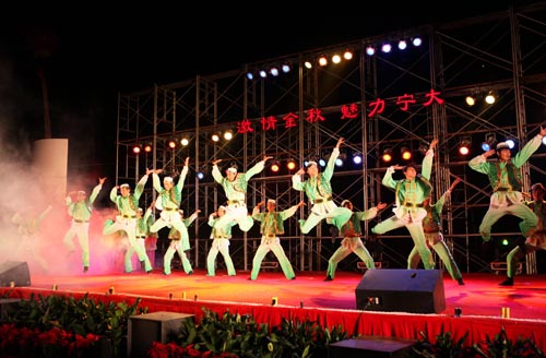 晚会在具有浓厚民族风格的舞蹈《这片热土》中拉开了序幕,随后的节目,形式多样,精彩连连。一曲《西部放歌》,酣畅淋漓的表达了塞上江南对同学们的欢迎之情;出神入化的中华武术,将传承了几千年的精华激情绽放;留学生表演的吉他弹唱和舞蹈表演将异域风情充分体现;师生们充满爱国情怀的诗朗诵《我爱我的祖国》博得观众们潮水般的掌声与喝彩;由音乐学院同学演出的大型舞蹈《塞上更辉煌》,更将晚会推向高潮。