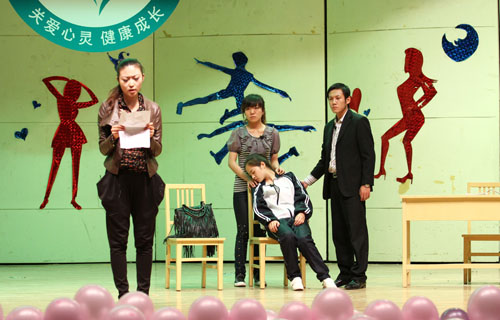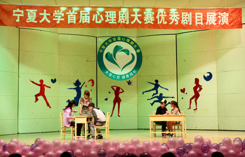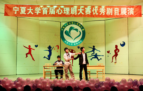 【宁夏大学新闻中心讯 黄二宁 陈佩 图∕文】5月24日下午,由我校学生处、心理健康教育咨询指导中心主办的首届心理剧大赛优秀剧目展演在A区音乐厅举行。校长何建国、校党委副书记赵利宁、校长办公室、学生处负责人与500余名学生代表一起观看了演出,来自物电、高职等7个学院的学子展示了他们精心排练的心理剧。