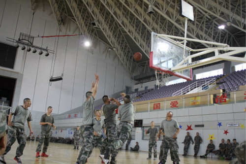 【宁夏大学新闻中心讯 国防生记者站 栾毅 孙晨/文 姬生龙/摄】为丰富国防生假期体育文化生活,增进新老生间的交流和认识,在国防生选培办和国防生直属团委的精心组织和安排下,9月25日上午,我校国防生在C区大学生活动中心开展了一场精彩的篮球友谊赛。选培办干事张静䶮、军训教官出席并参加了比赛。