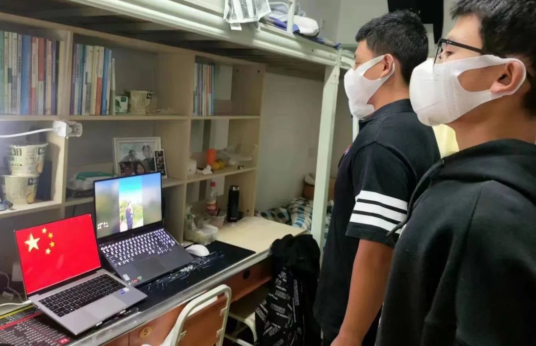 在银川科技学院“致敬祖国齐心抗疫”主题线上升旗仪式上,1万余名师生虽然封控在宿舍和集中隔离点,但大家依然保持着挺立的站姿,注视着屏幕,齐唱国歌,向国旗行注目礼。看到鲜艳的五星红旗迎着初升的朝阳飘扬在校园上空,极大增强了师生抗疫必胜的信心,弘扬了正能量,激发了青年学生爱国主义情怀。
