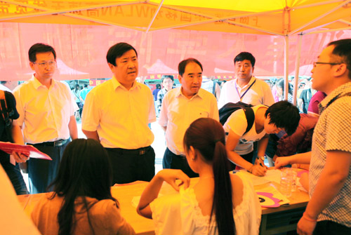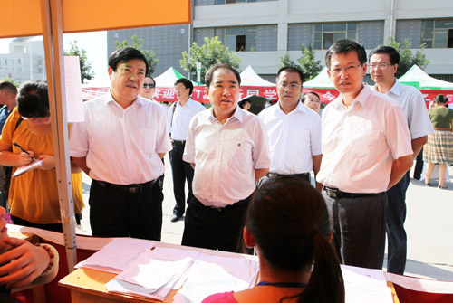校领导首先来到大学生活动中心新生报到现场,察看新生报到情况,看望新生接待工作人员,问候新生和家长。齐岳书记在各个学院的服务台仔细询问并听取了迎新工作汇报,每到一个学院报到处都拿起该学院的新生手册认真翻阅。何建国校长在阿拉伯语学院新生报到处关切地询问工作人员,今年有没有外籍学生,有没有在学费上遇到困难的学生,学校提供了怎样的帮助。紧接着,校领导前往生源地信用助学贷款办理绿色通道,工作人员向校领导介绍了办理助学贷款的流程及相关情况。