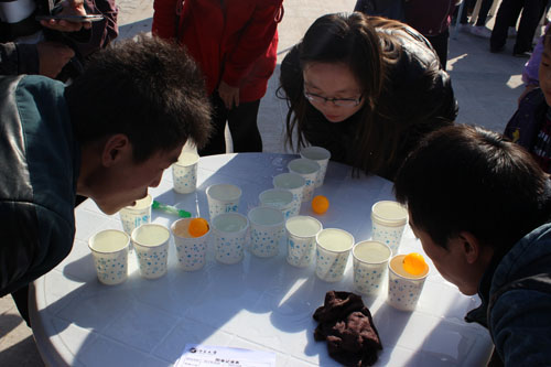 活动共安排了包括风火轮流转、吹乒乓球、空中套瓶、夹弹珠、弹球和跳个舞吧等在内的六个小游戏,轻松有趣,吸引了众多学生驻足参与,整个活动现场呈现出一派欢乐和谐的氛围。