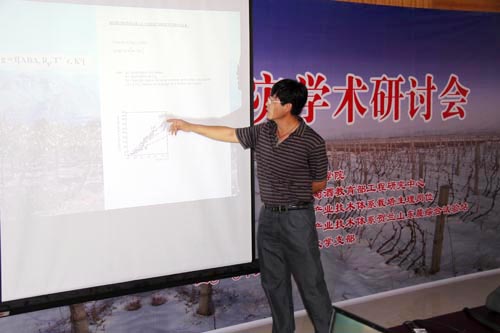 受会议邀请,欧美葡萄整形研究会会长、法国蒙彼利埃国际高等农业大学葡萄学教授、博导Alain CARBONNEAU博士,上海交通大学农学院果树研究室主任、博导王世平教授在研讨会上做了精彩的报告。大会就近年来葡萄遇到的干旱、霜冻等自然灾害从生理上做了详细的介绍并提出了技术上的预防措施。专家学者们对一直难以解决的干旱问题和今年遇到的多次寒潮霜冻现象以及制约宁夏葡萄产业发展的因素进行了研讨并提出了相应的预防措施和相关建议。会后,法国Alain CARBONNEAU教授等专家参观了贺兰山东麓优质酿酒葡萄基地。