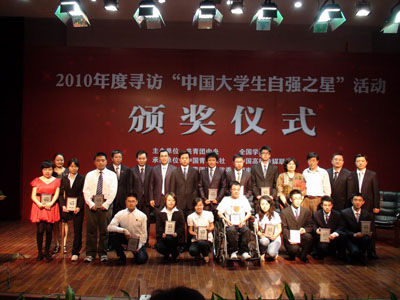 【宁夏大学新闻中心讯 张新民/文】4月29日,2010年中国大学生自强之星颁奖会在湖南师大隆重举行,我校经济管理学院陈佩同学荣获“2010中国大学生自强之星”称号,并获得新东方自强奖学金5000元。