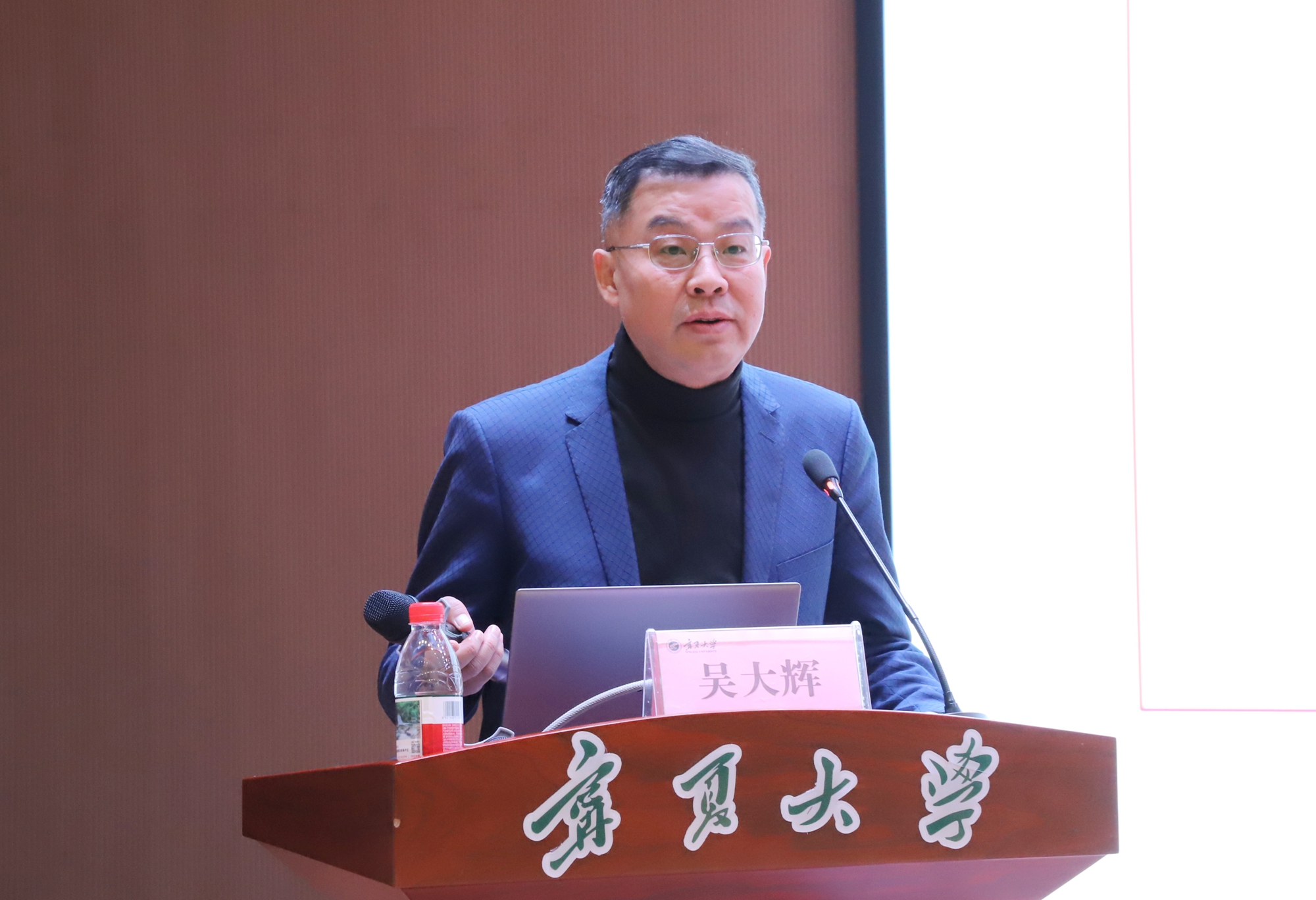 【宁夏大学新闻中心讯 姬晓姗 文/图】为深入贯彻习近平总书记关于加强国家安全教育的重要指示批示精神,引导广大师生进一步深入理解和准确把握总体国家安全观的丰富内涵和精神实质,10月27日,我校在贺兰山校区笃行楼一楼报告厅举办第二十六期“贺兰山论坛”。清华大学俄罗斯研究院副院长、国际关系学系长聘教授、博士生导师吴大辉受邀作题为《俄乌冲突与新军事变革——基于现代高端战争的考察》专题报告。校领导王宏伟、彭志科、韩惠丽、黄河、马元、谢海涛、杨文法参加报告会。学术副校长牛新春主持报告会。