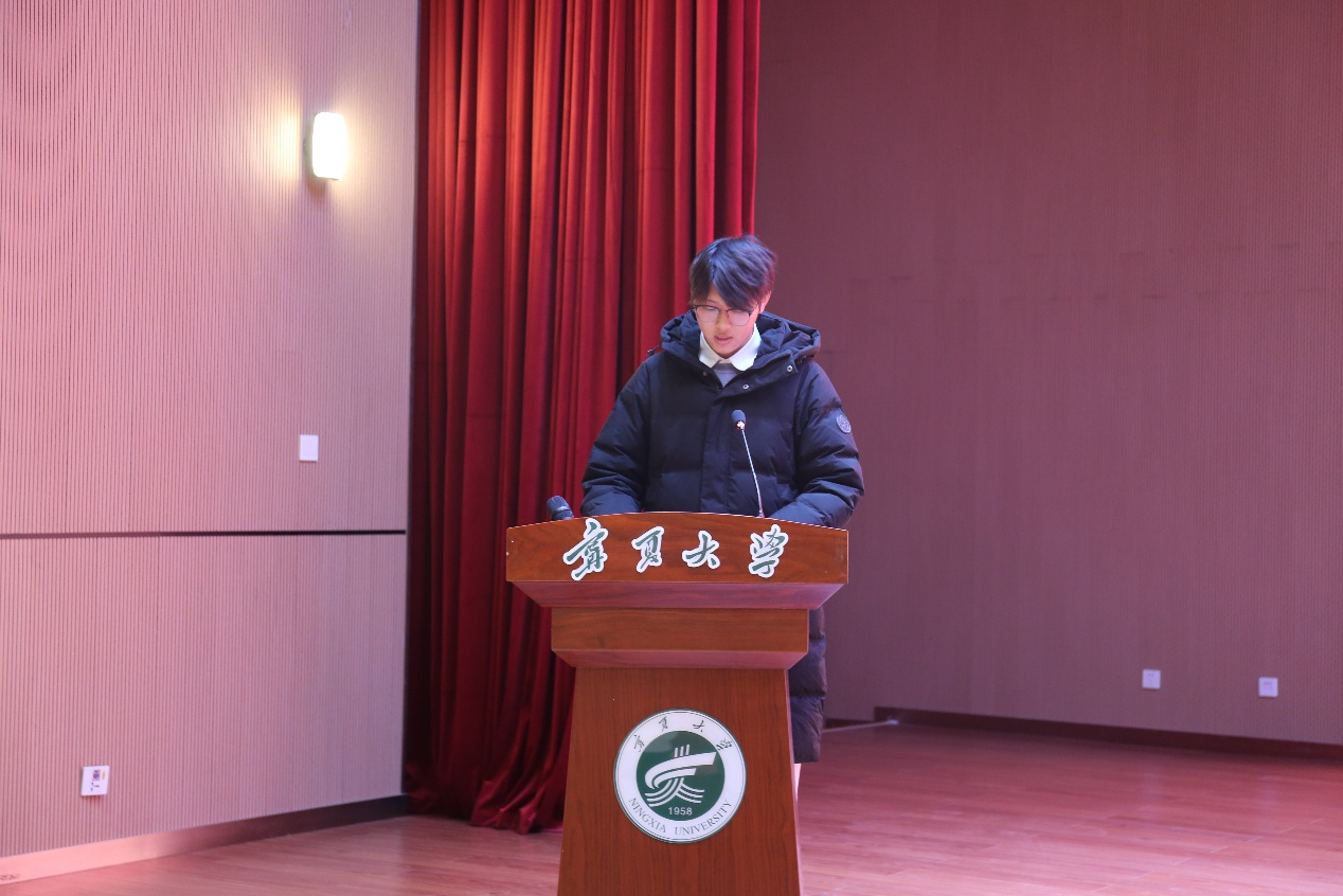 “贺兰英才”“骐骥计划”新生骨干培训班学员代表张厚承在发言中分享了闽宁镇研学等实践带来的成长感悟,提出要坚定理想、锤炼本领、互学互鉴,号召全体学员珍惜培训机会,将所学转化为服务同学们的动力,以实干书写青春篇章。