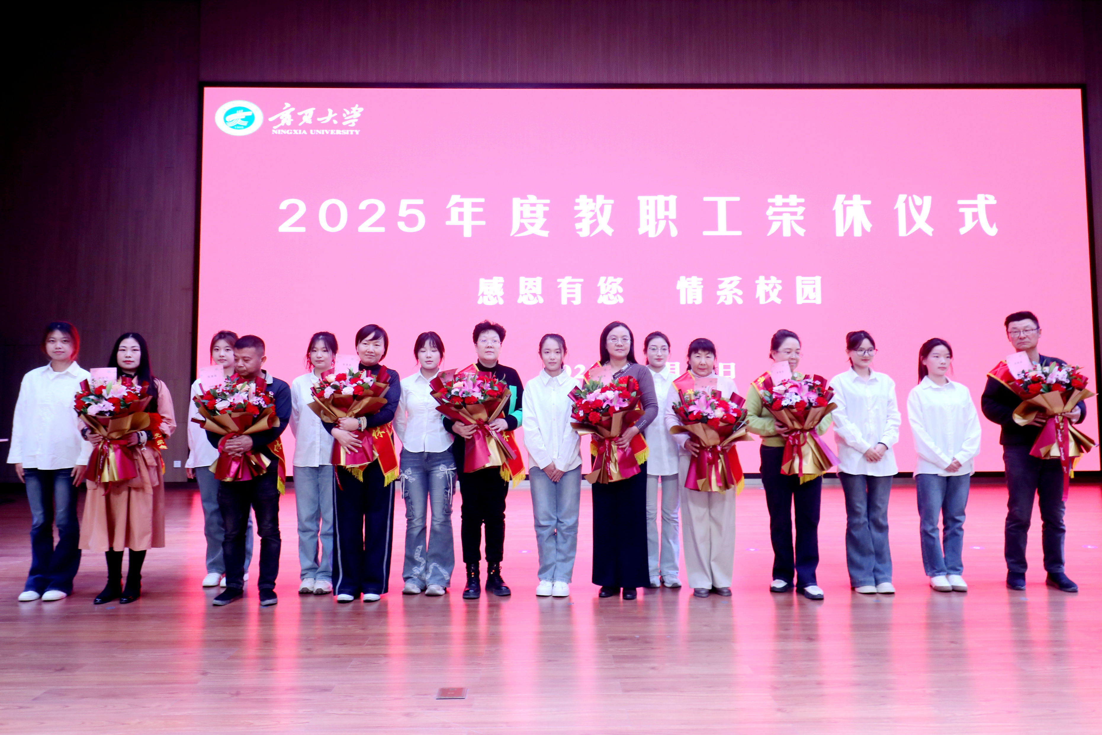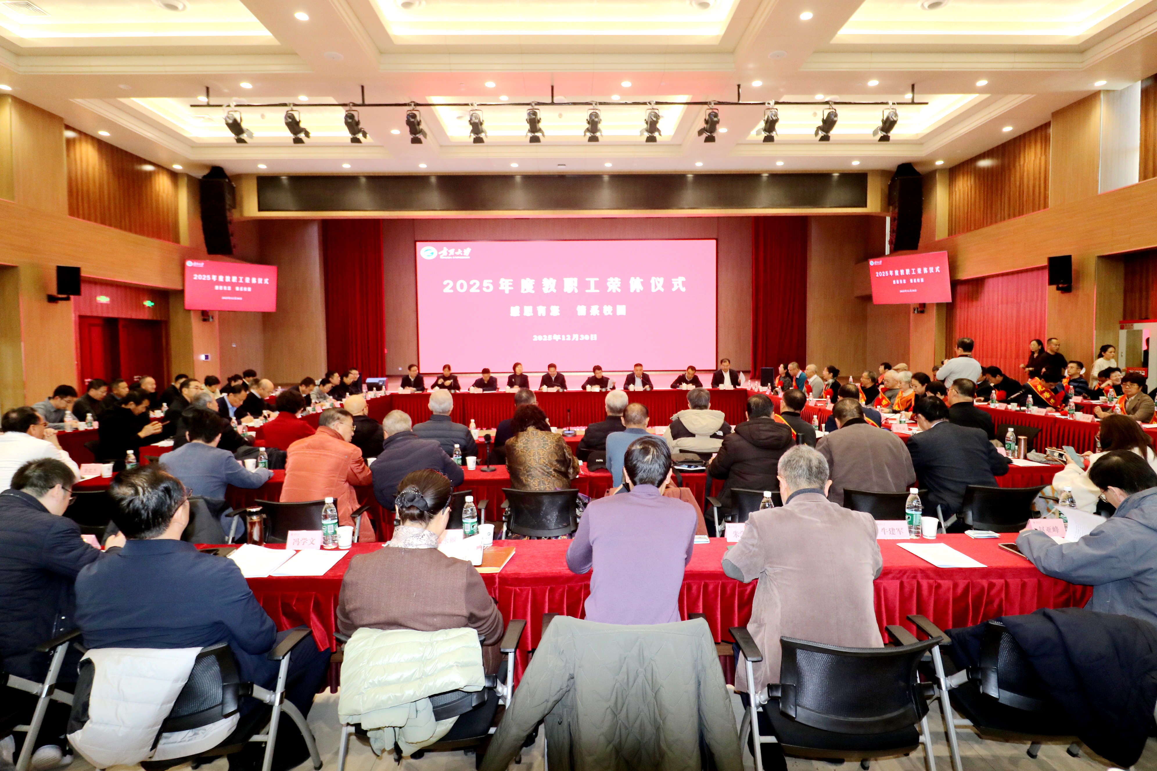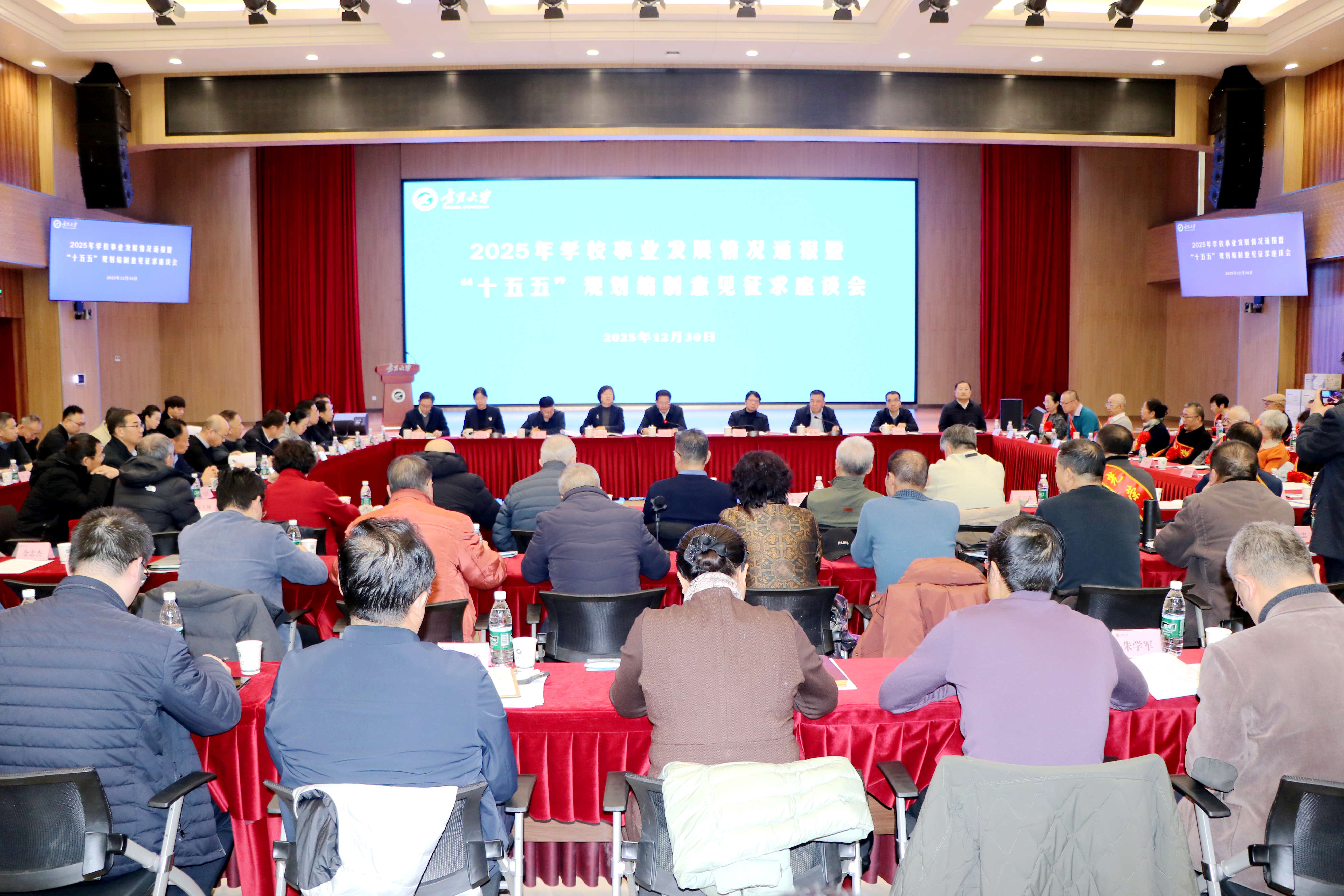 【宁夏大学新闻中心讯 张景/文、图】薪火相传守初心,砥砺奋进启新程。12月30日,我校在贺兰山校区笃行楼三楼报告厅举行2025年度教职工荣休仪式并召开学校事业发展情况通报暨“十五五”规划编制征求意见座谈会。全体校领导、党外人士代表、老同志代表、2025年度荣休教职工代表及相关部门负责人共100余人齐聚一堂,共忆执教岁月,共话学校发展,共绘未来蓝图。