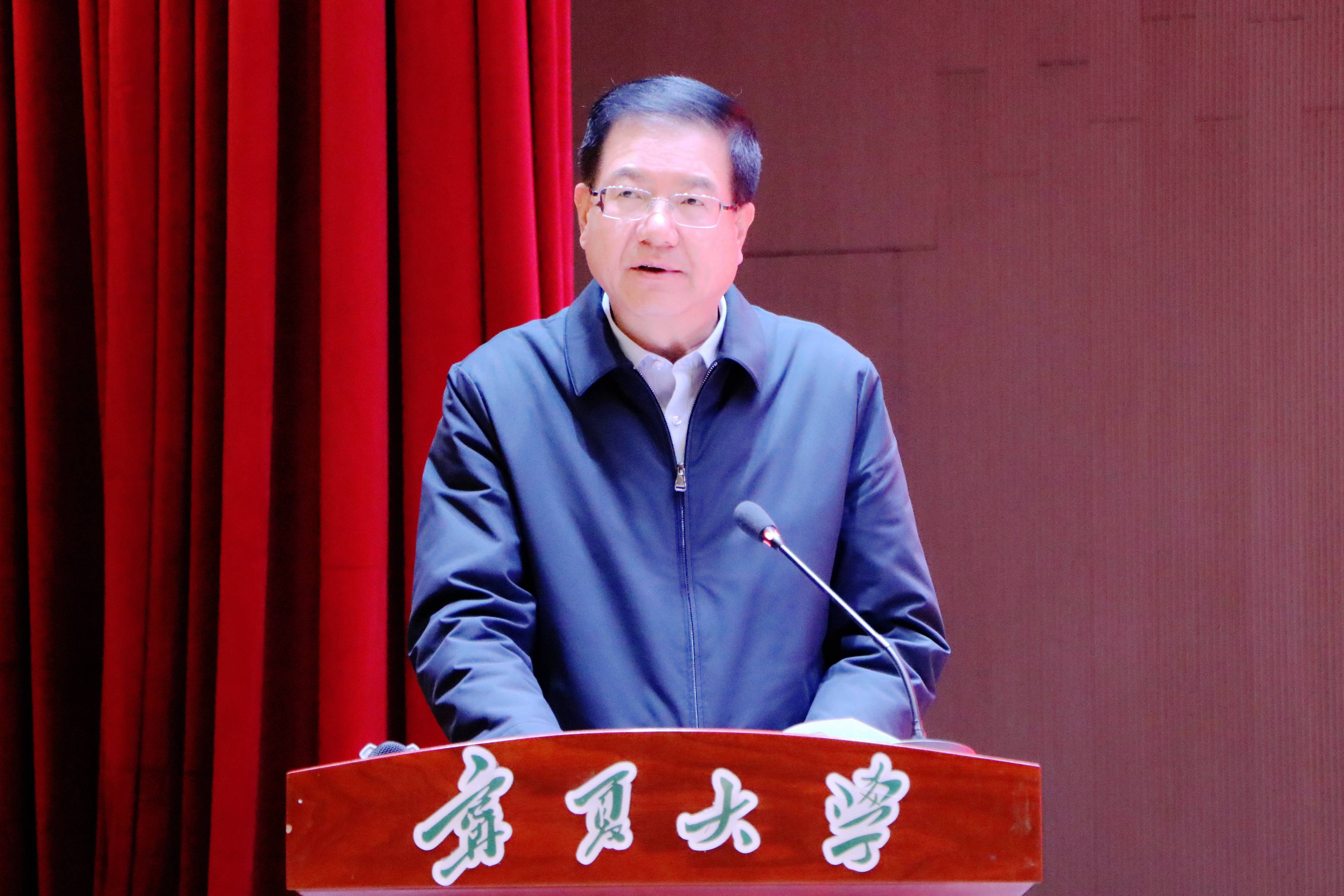 【宁夏大学新闻中心讯 冯禹君/文 张景/图】为深入学习贯彻全国两会精神,切实把全校党员领导干部的思想和行动统一到党中央决策部署上来,把智慧和力量凝聚到学校办学治校、立德树人实践中来,3月19日,学校在笃行楼一楼报告厅举办2026年全国两会精神宣讲报告会。全国政协委员、自治区科协副主席、宁夏大学原党委书记李星受邀作宣讲报告。校党委书记王宏伟主持报告会。