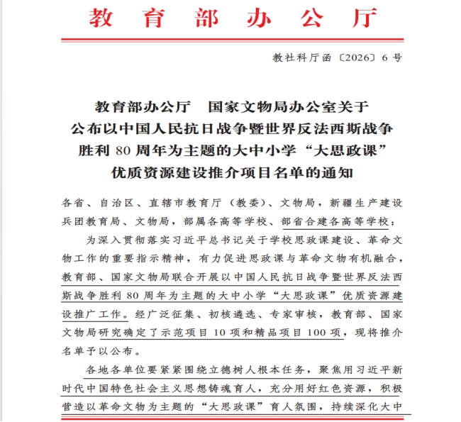 我校两项成果分别入选教育部首批新时代学校思想政治教育典型案例及教育部、国家文物局组织建设的“大思政课”优质资源推介名单