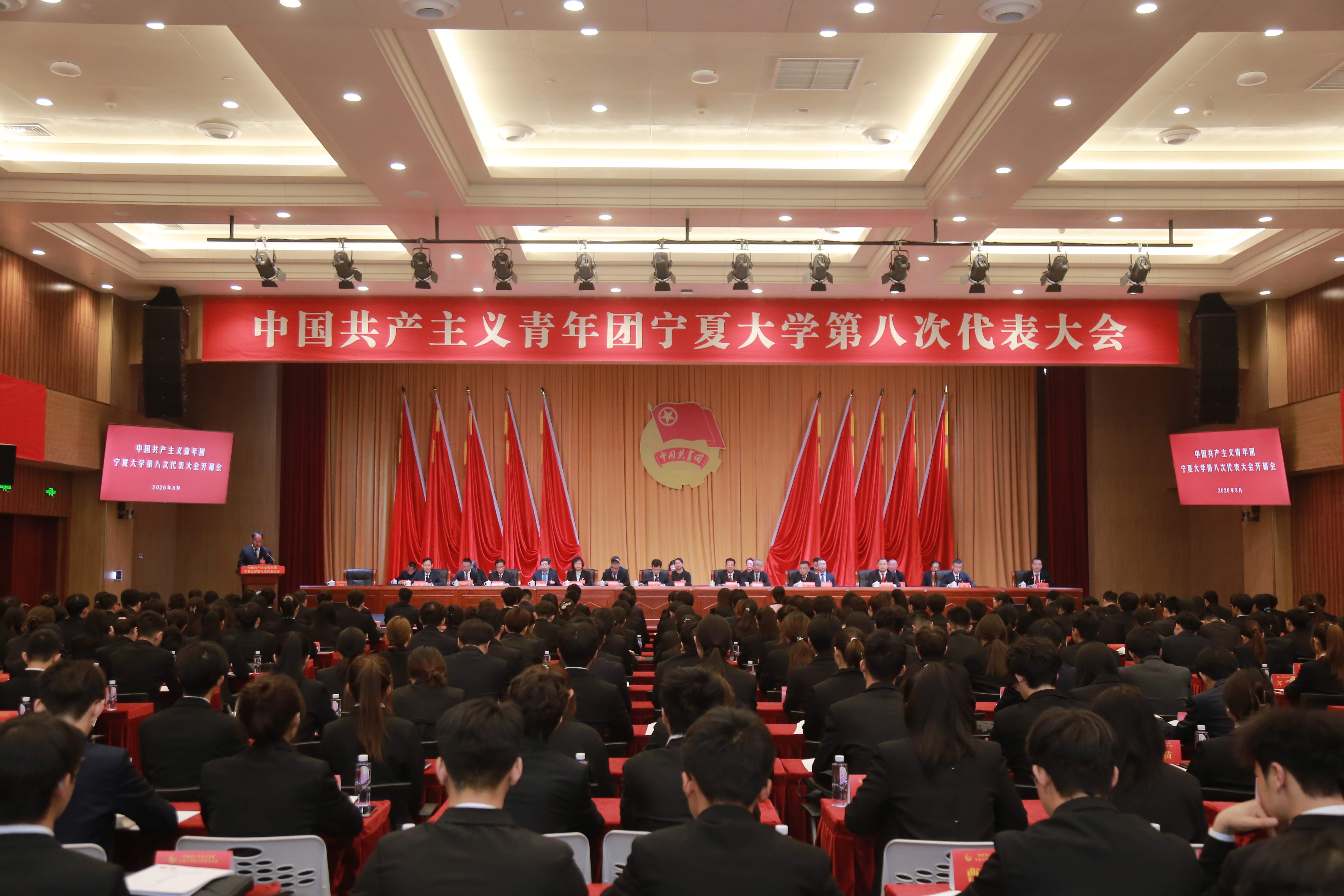 【宁夏大学新闻中心讯 团委/文 学生记者 王梓轩 邸靖淳 李美璇/图】3月28日,中国共产主义青年团宁夏大学第八次代表大会在贺兰山校区笃行楼三楼报告厅隆重召开。共青团宁夏回族自治区委员会书记龚雪飞,宁夏大学党委书记王宏伟出席开幕会并讲话。自治区团委相关部门负责人,西北农林科技大学等区内外兄弟院校团委负责同志,学校相关职能部门、各书院(学院)、宁夏大学附属中学相关负责同志,以及本次大会正式代表、列席代表参加开幕会。
