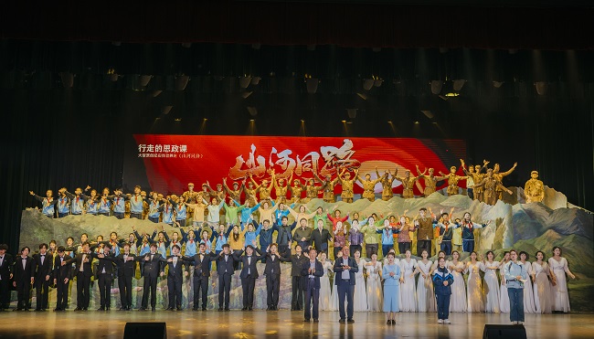 大型原创纪实性歌舞剧《山河同路》紧紧围绕“培养什么人、怎样培养人、为谁培养人”的根本问题,将铸牢中华民族共同体意识贯穿始终,深度融入爱国主义、集体主义、英雄主义教育。这不仅是一部赓续红色血脉的文艺作品,更是宁夏大学落实立德树人根本任务,践行为党育人、为国育才崇高使命的生动注脚。演出把舞台变为思政课堂,把路途变为育人阵地,推动艺术教育与思想政治教育深度融合、高校与中小学协同联动,进一步夯实思政育人实践基础,着力形成可复制、可推广的“宁夏思政育人方案”,更好助力教育强区建设。