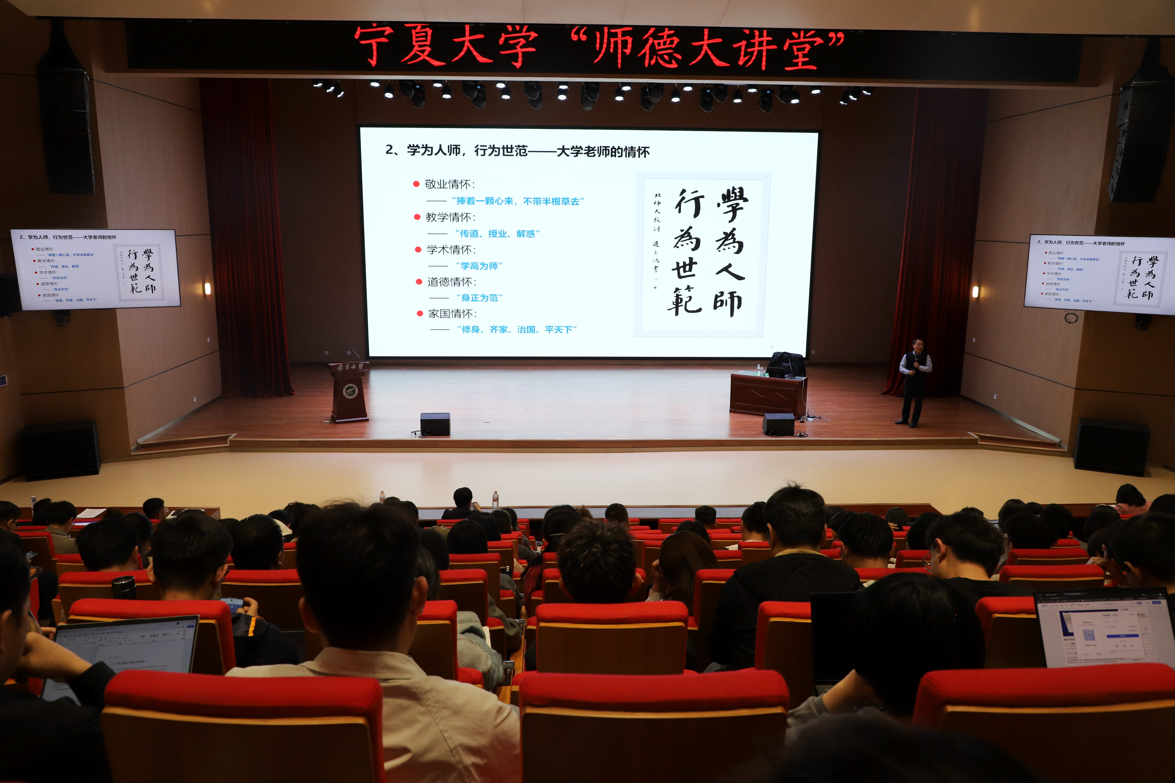 【宁夏大学新闻中心讯 党委教师工作部/文 王文娣 学生记者李美璇/图】4月22日,厦门大学黄凌风教授受邀在贺兰山校区笃行楼报告厅为我校300余名青年教师作师德师风专题报告。校党委副书记韩惠丽主持报告会。