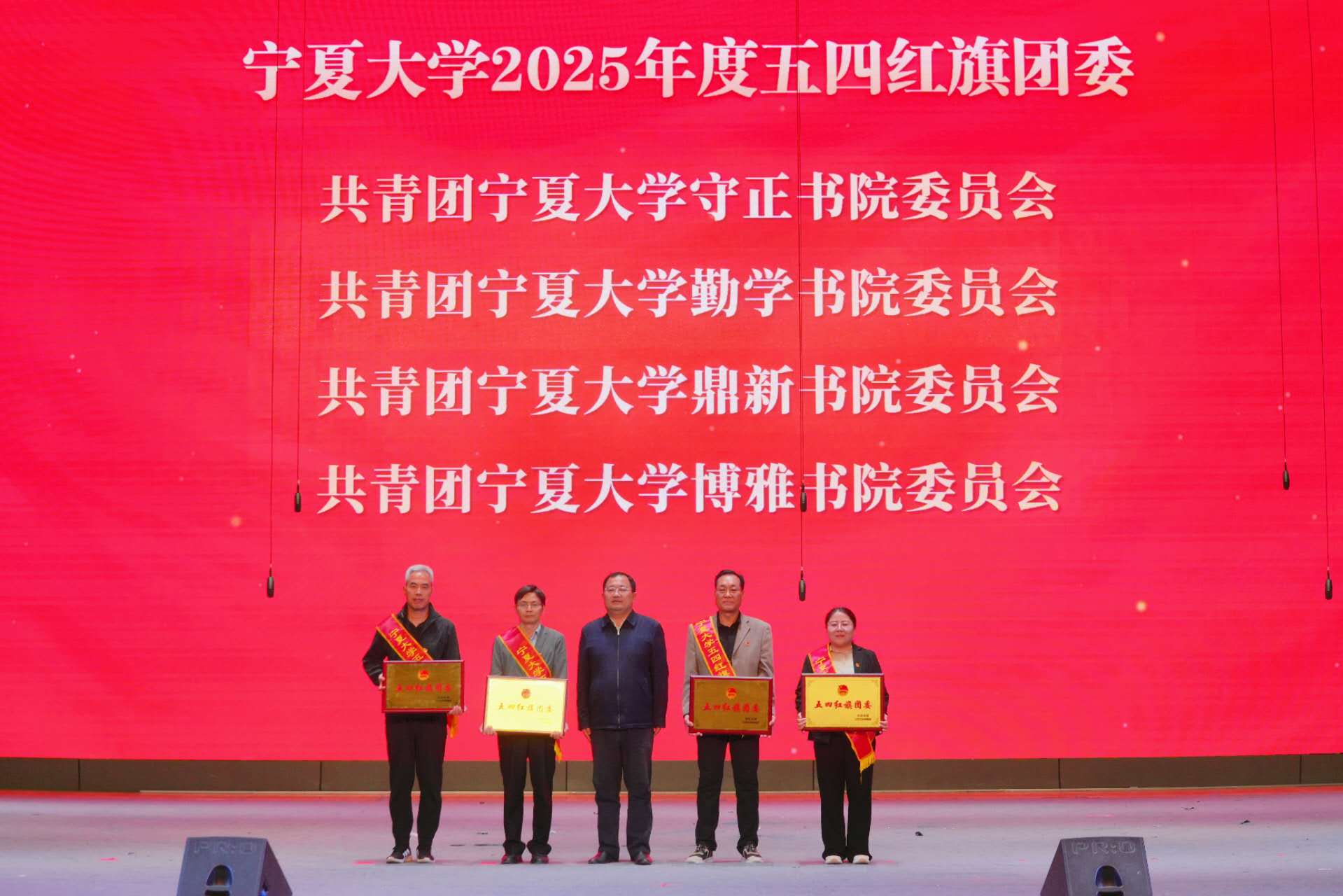 【宁夏大学新闻中心讯 团委】4月29日晚,“百年薪火守初心 清风砺志正青春”纪念五四运动107周年暨“五四”表彰、“两节”开幕式在国家大学生文化素质教育基地隆重举行。校党委常委、副校长杨文法出席活动,校团委书记肖功国主持大会。