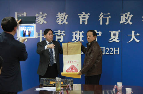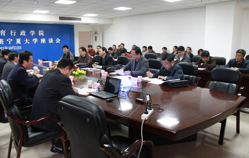 自治区教育厅高等教育处处长殷骅介绍了宁夏高等教育的基本情况。校长办公室主任杨振东、科技处处长李建设分别介绍了我校建设发展的基本情况和学校服务地方工作的情况。双方就高校管理体制创新等进行了广泛而深入地交流与探讨。