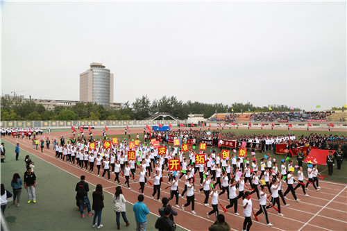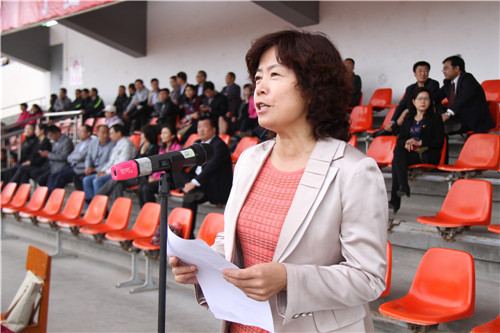 王春秀致开幕辞,她指出,发展体育运动,增强人民体质,这是关系国家和民族未来的大事,也是我校的优良传统。长期以来我校认真贯彻教育部“阳光体育运动”精神,在全校倡导“每天锻炼一小时,健康工作五十年,幸福生活一辈子”的全民健身理念。一年来,我校大众体育和竞技体育都取得了成绩,学校体育事业蓬勃发展,促进人才培养质量不断提高。希望大家不断总结经验、再接再厉,努力创造新的辉煌。让自强不息的体育精神和互敬互助的文明之花在校园里美丽绽放。