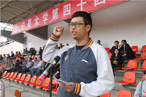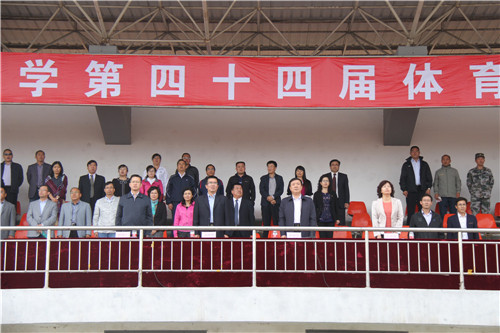 【宁夏大学新闻中心讯 胡玥/文 龚旭峰 雷慧/图】 9月28日下午,宁夏大学第四十四届体育运动会在校本部B区体育场盛大开幕。校党政领导金能明、何建国、赵利宁、王春秀出席开幕式。赵利宁主持开幕式。学校精神文明工作委员会领导小组成员,各部门、各学院负责人和学生观众分别就坐。