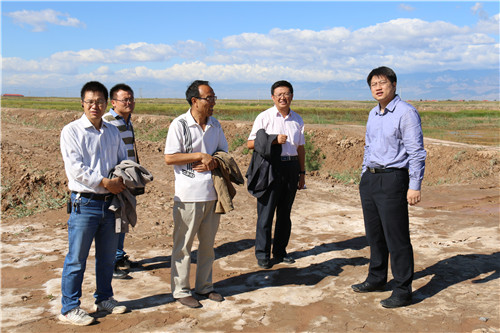 【宁夏大学新闻中心讯 新技术应用中心】9月27日,共青团第十七届中央委员会委员、清华大学团委书记赵博在宁夏平罗县西大滩前进农场考察了我校承担的国家“十二五”科技支撑计划项目《典型盐碱地改良技术与工程示范》研究示范基地。