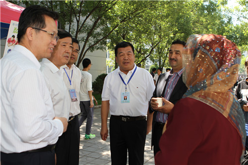 校领导和来自新疆阿图什的家长亲切交谈,详细询问了他们的家庭情况、孩子的学习情况等,并表示家长如果对学校有什么建议要积极的提出来,以便学校更好的为学生服务。家长表示,对学校各方面都比较满意,校园环境也很好,感谢校领导的关怀。
