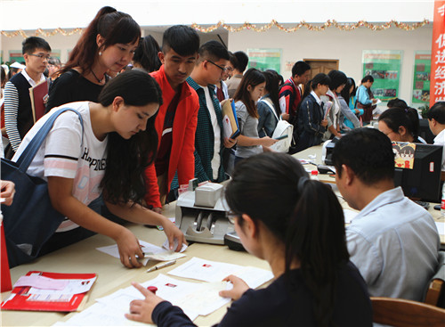 在新生报名处和交费处,校领导详细了解新生的到校情况、学生和家长的安置、学院分班以及收费等情况,并亲切慰问了在场的工作人员。