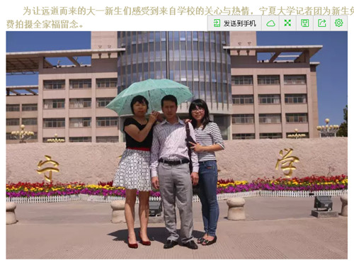 当天,记者团在A、B、C三区大门口设点,为新生免费拍摄全家福。并且,将记者团编辑部、策划部和新媒体中心在整合之后组成海采小组,对校领导、新生、新生家长、老生、以及学校各单位进行采访。后期,所有稿件和拍摄的照片都在宁夏大学微信平台和微博平台即时推出。活动成果推出后,得到了校领导和学生的充分肯定,大家纷纷在微博和微信平台留言,为此次活动点赞!