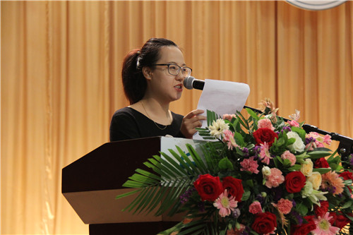 在雄壮的国歌声中,典礼拉开序幕。土木与水利工程学院2015级博士研究生夏天代表所有新生向全体老师送上节日的祝福,并表达了自己进入宁大继续深造的喜悦。她将自己作学术的感受与大家分享。