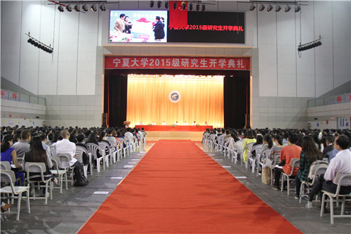 【宁夏大学新闻中心讯 穆苗苗/文 龚旭峰/图】9月10日,乘着第31个教师节满校园浓浓的祝福,我校2015级研究生开学典礼在大学生活动中心举行。校长何建国,党委副书记赵利宁、王燕昌,副校长许兴、谢应忠、王春秀、田军仓以及研究生院、各培养单位研究生工作负责人,导师代表、学办主任、研究生秘书和940名新入校的研究生参加典礼。王燕昌主持开学典礼。