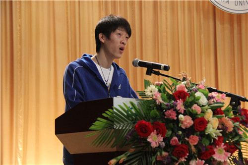 人文学院2014级硕士研究生薛正鑫代表老生向所有新生的到来表示欢迎,并将自己对校训的理解同在座的学弟学妹们分享,希望大家珍惜在宁夏大学求学的机会。