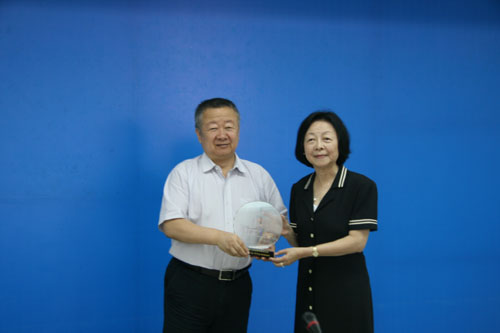 冀永强向香港学者协会教授团赠送礼品并合影留念。