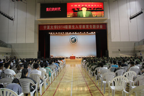 【宁夏大学新闻中心讯 学生记者 陈磊/文 学生处/图】9月2日晚,宁夏大学2014级新生入学教育专题讲座在大学生活动中心举行。中国作家协会会员,国家一级作家张学东为我校2014级新生作了题为《我们的时代》的讲座。