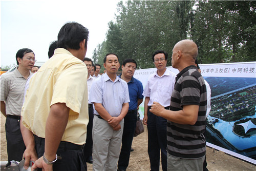 【宁夏大学新闻中心讯 龚旭峰/文、图】8月4日下午,自治区副主席姚爱兴、政府副秘书长崔晓华、教育厅厅长郭虎一行来到中卫,调研我校中卫校区筹建情况。自治区副主席、中卫市委书记马廷礼、市领导张举、刘向兵、施润云,我校校长何建国、副书记赵利宁、副书记王燕昌、副校长王春秀和相关部门负责同志陪同调研。