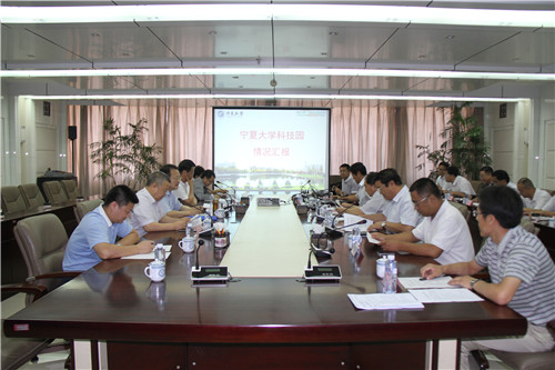 【宁夏大学新闻中心讯 金桂琴/文 龚旭峰/图】7月24日上午9:00,宁夏大学科技园工作汇报会在校本部A区主楼11楼会议室召开。科技部高新司巡视员耿战修、科技部高新司工业发展处副处长刘志春,区科技厅副厅长马希荣、工业处处长张儒,区教育厅副厅长冀永强、高教处处长刘炎胜,宁夏大学党委书记齐岳、校长何建国、副校长许兴及相关部门负责人参加了会议。何建国主持了会议。