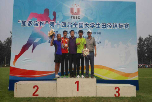 【宁夏大学新闻中心讯体育学院谢 琴】第十四届全国大学生田径锦标赛于8月26—29日在北京体育大学如期举行。在我校梅峰、张宁老师的带领下,体育学院学生杨涛(2010级)、铁亮(2012级)分别以8′54″73和8′56″33 的成绩摘得男子甲组3000米障碍赛的金牌、银牌。付文国(2012级)以14′32″的成绩摘得男子甲组5000米长跑银牌、31′44″93的成绩获得男子10000米长跑第七名。