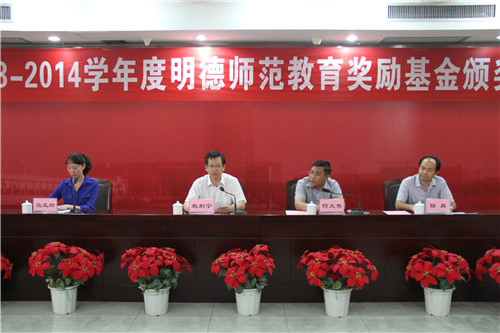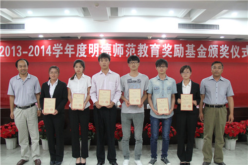 另悉,6月18日上午,“明德师范教育奖励基金2013—2014学年度”颁奖仪式在北京师范大学举行。赵利宁、任磊、马玉玲、教师代表吴晓红一同参加了颁奖仪式。在2014年明德奖工作会议上,我校学生资助管理中心负责人介绍了我校“明德奖”评选工作的特色、经验体会及改进建议等。
