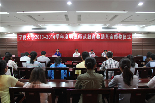 颁奖仪式上,教务处处长何凤隽宣读了宁夏大学获得“明德奖”的教师及学生名单,参会领导分别为获奖教师和学生代表颁奖。获奖教师和学生代表在颁奖仪式上相继发言,感谢明德师范奖学金基金会、感谢钟瀚德先生能够伸出一双援手,奖励和支持在校的德才兼优的师范专业学生和教师,激励他们不断提高自身素质,成为担负教育兴国重任的优秀人才,从而进一步提高我国教师教育教学质量和教师队伍素质,造福中国教育事业。