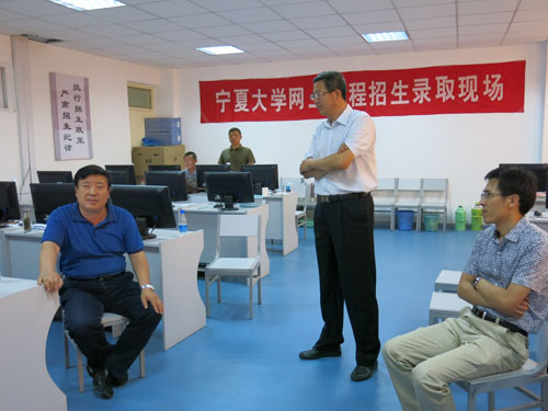 【宁夏大学新闻中心讯 胡玥】7月11日下午,何建国校长前往我校本科生招生录取工作现场,视察2014年本科生招生录取工作,看望慰问招生录取工作人员。学生处、工会、校办相关负责人陪同视察。