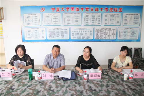 高继明指出,国防生迷彩青春青春党支部实际上是一套班子两套机制,主要是将模拟营正规化建设与学生党建工作相结合。我校认为,一是可将迷彩青春党支部作为全区国防教育实践基地,推动全区国防教育的大力发展;二是国防生日常管理严格,可借助迷彩青春党支部将国防生日常行为规范向全校推广,为广大学生树立标杆;三是在宁夏大学继续保留兰州军区国防生签约高校的基础上乘势而上,把迷彩青春党支部打造成为“政治可靠、素质全面、特点突出”的在全校乃至全区的各大高校具有影响力的品牌公寓党支部。